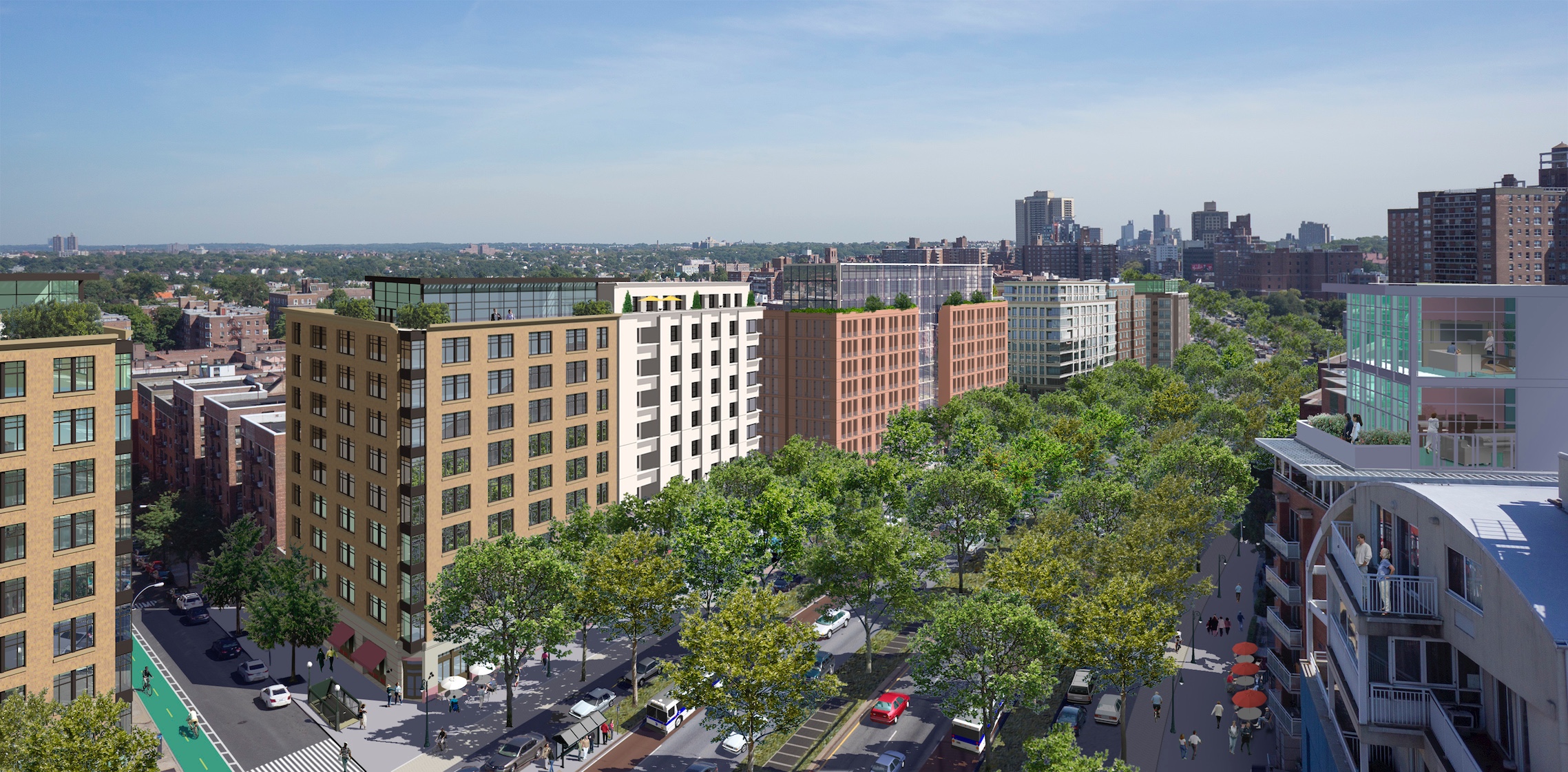 - AFTER: Queens Boulevard, Queens, New York. Aerial view looking south from 68th Avenue. © 2014 Massengale & Co LLC and UrbanAdvantage, for Transportation Alternatives.